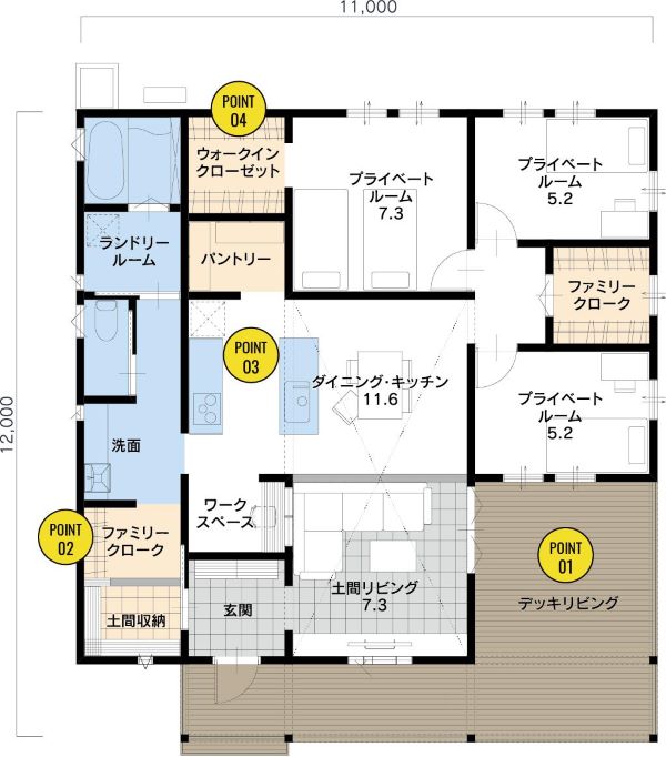 坪数を減らす際のポイントとして、居住スペースの広さを無理に狭めるのではなく、以下の部分に注目しましょう。