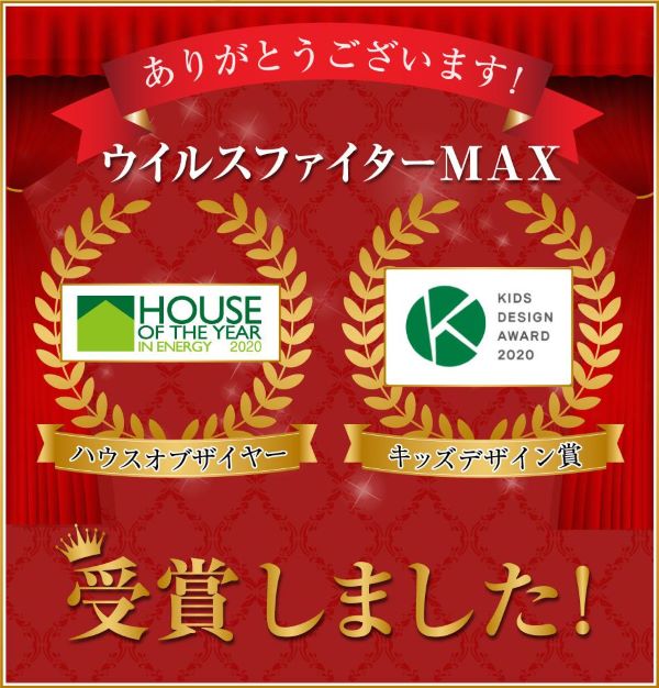 「玄関クリーンルーム」や「除菌ナノバブルウォーター」など、徹底したウイルス対策が施された商品「ウイルスファイターMAX」は、2020年度に以下の賞を受賞しました。