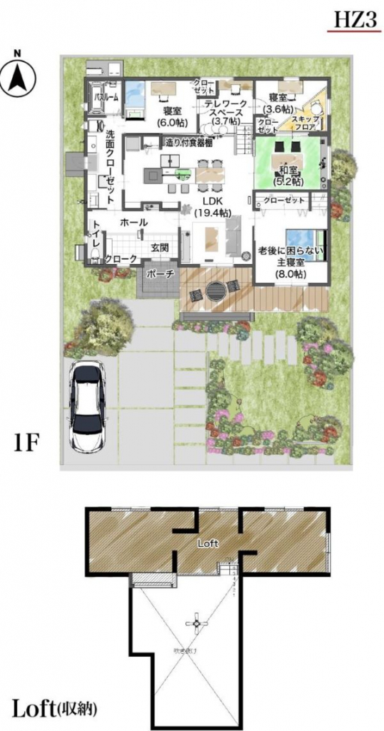 - Z1プラン(5LDK・38坪~) : 家族が多い方にも対応可能な広々プラン。
