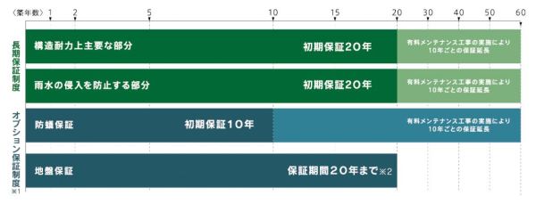 - 有償のメンテナンスを受けることで、最長60年まで延長可能。
